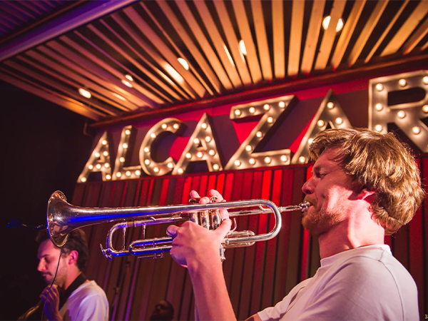 Una delle caratteristiche distintive dell'Alcazar è la presenza di una resident jazz band che si esibisce regolarmente, garantendo serate di altissima qualità musicale anche al di fuori degli eventi con artisti ospiti. Le jam session aperte permettono a musicisti locali e internazionali di salire sul palco e improvvisare, creando momenti di autentica magia musicale dove il confine tra artista e pubblico si fa sottile.
